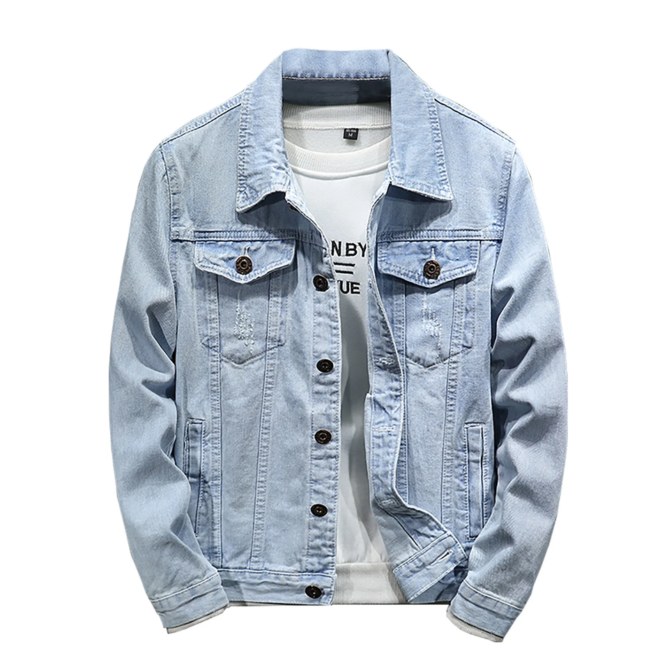 Veste en jean délavée confortable pour hommes, coupe ajustée, saison d'hiver, veste en jean décontractée pour hommes de grande taille