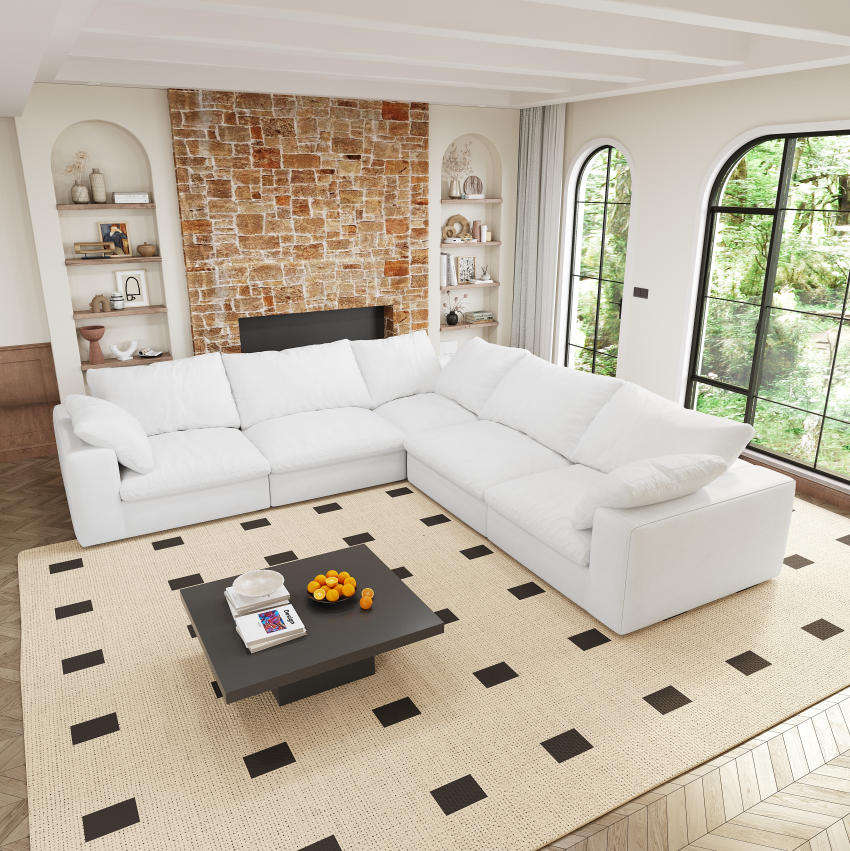 Canapé modulaire sectionnel confortable en tissu blanc, canapé inclinable compressible pour salle à manger, salon, appartement, hôtel