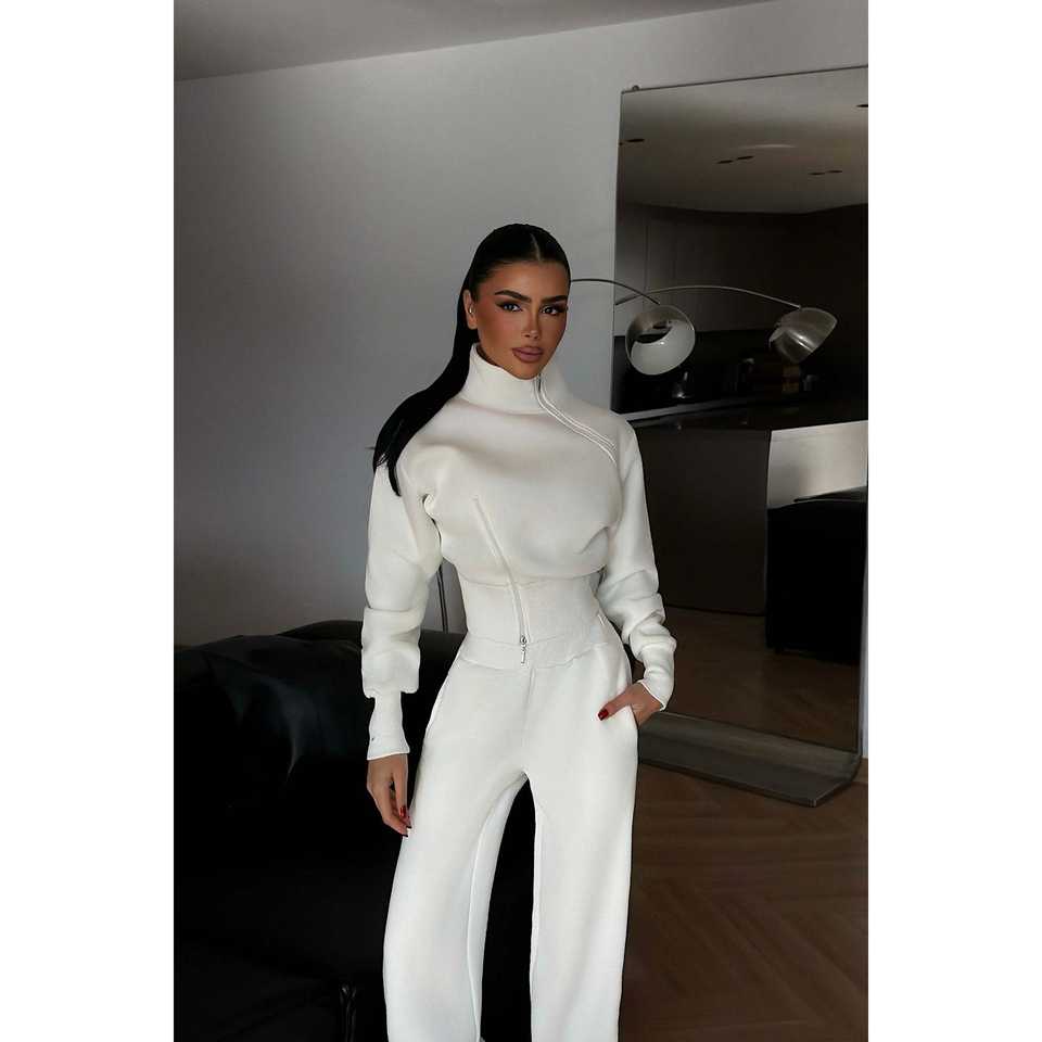 Ensemble de survêtement blanc confortable avec fermeture éclair, coupe-vent et respirant, idéal pour l'hiver, pour garçons, avec impression unie personnalisée pour le jogging