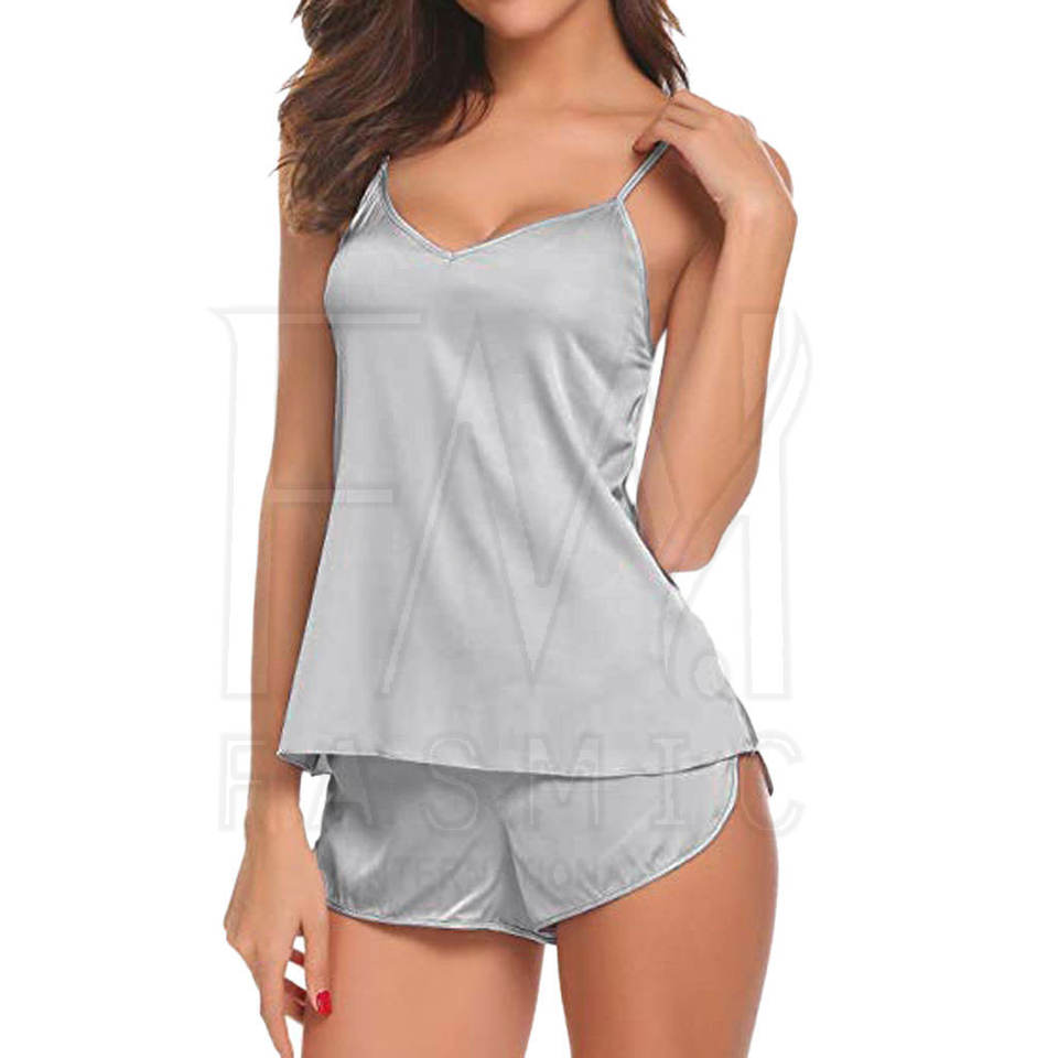 Ensembles courts de vêtements de nuit pour femmes confortables avec emballage personnalisé Ensemble court à manches courtes pour col boutonné