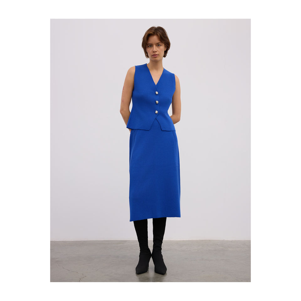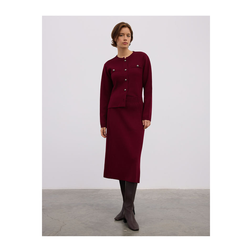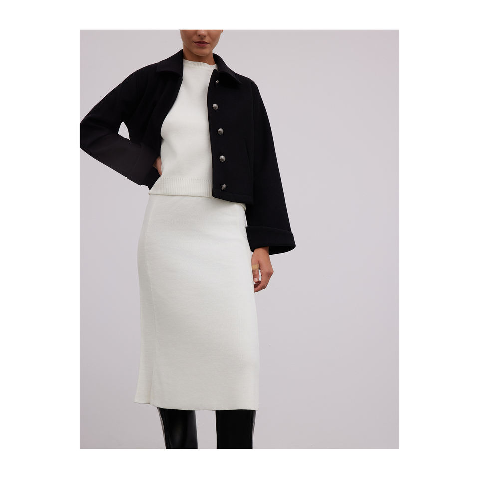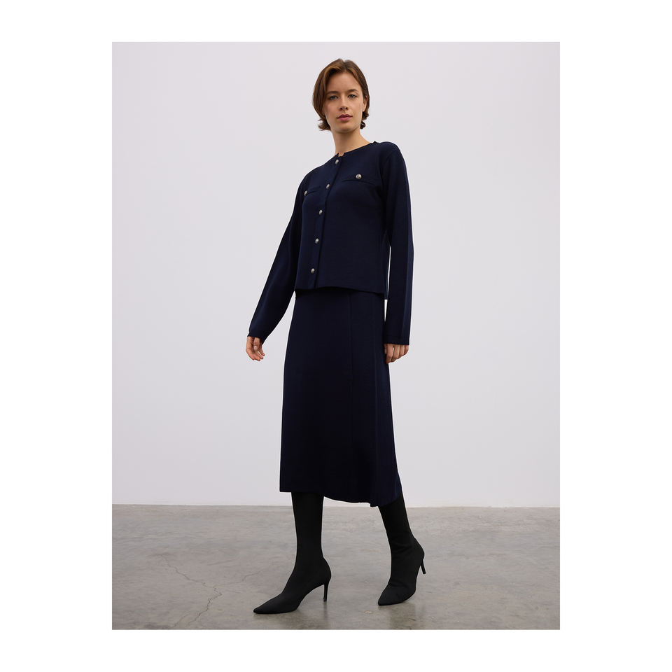 Jupe midi confortable en mélange de laine, coupe trapèze