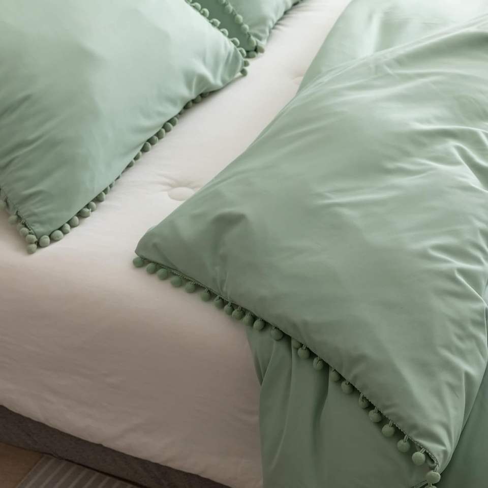 Ensembles de couette couette pleine taille avec boule Pom frange ensemble de literie couleur unie ensemble de housse de couette douce avec boule Pom frange