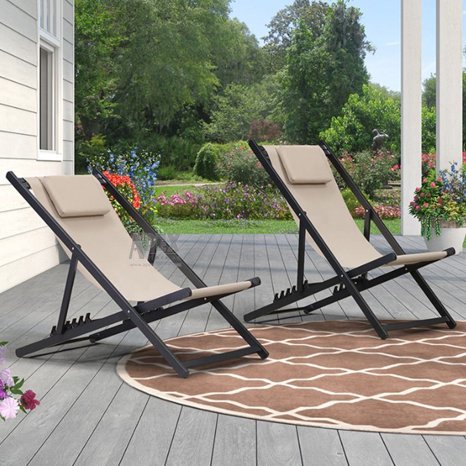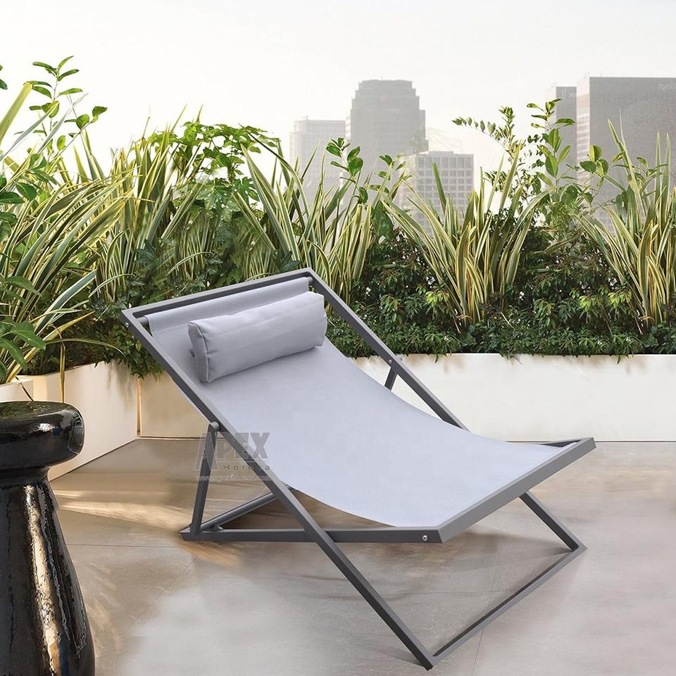 L'appui-tête confortable offre une conception ergonomique Wave Patio Chaise longue en aluminium Camping en plein air Chaise pliante