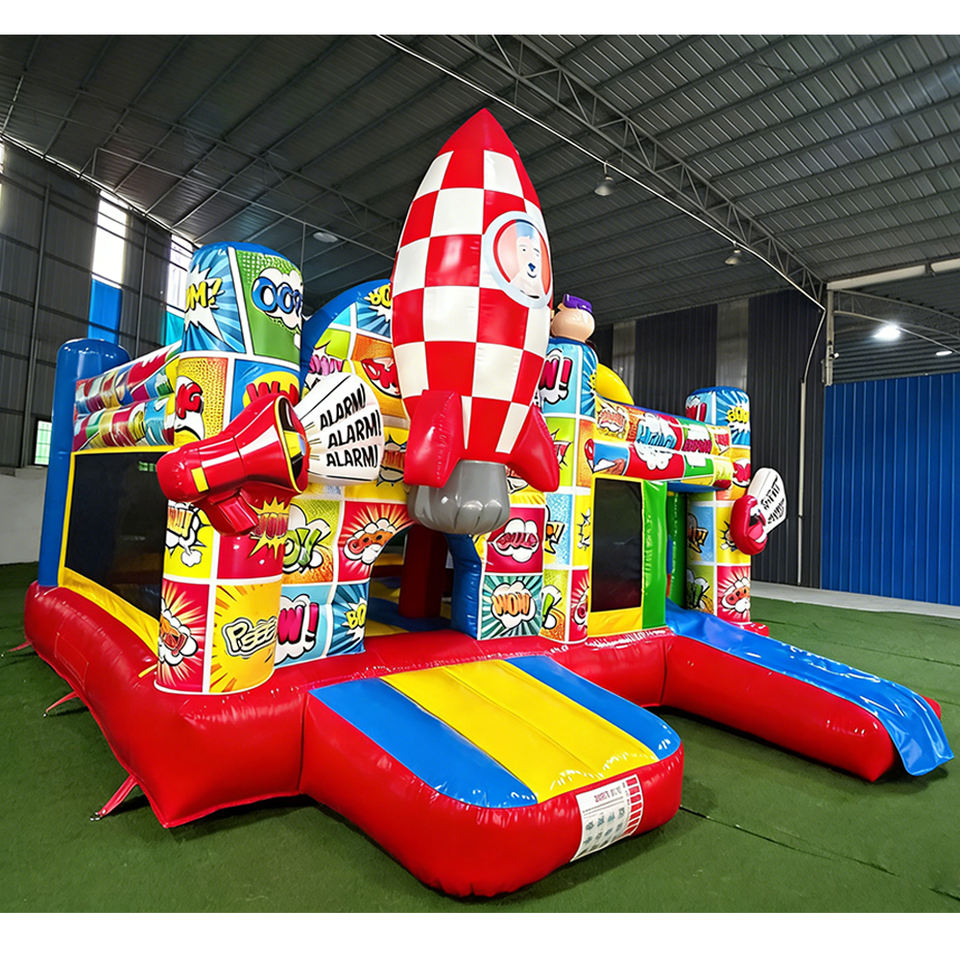 Château gonflable Commercial de qualité supérieure pour enfants, motif fusée Pop Art de bande dessinée, avec toboggan, pour fêtes et parcs d'attractions