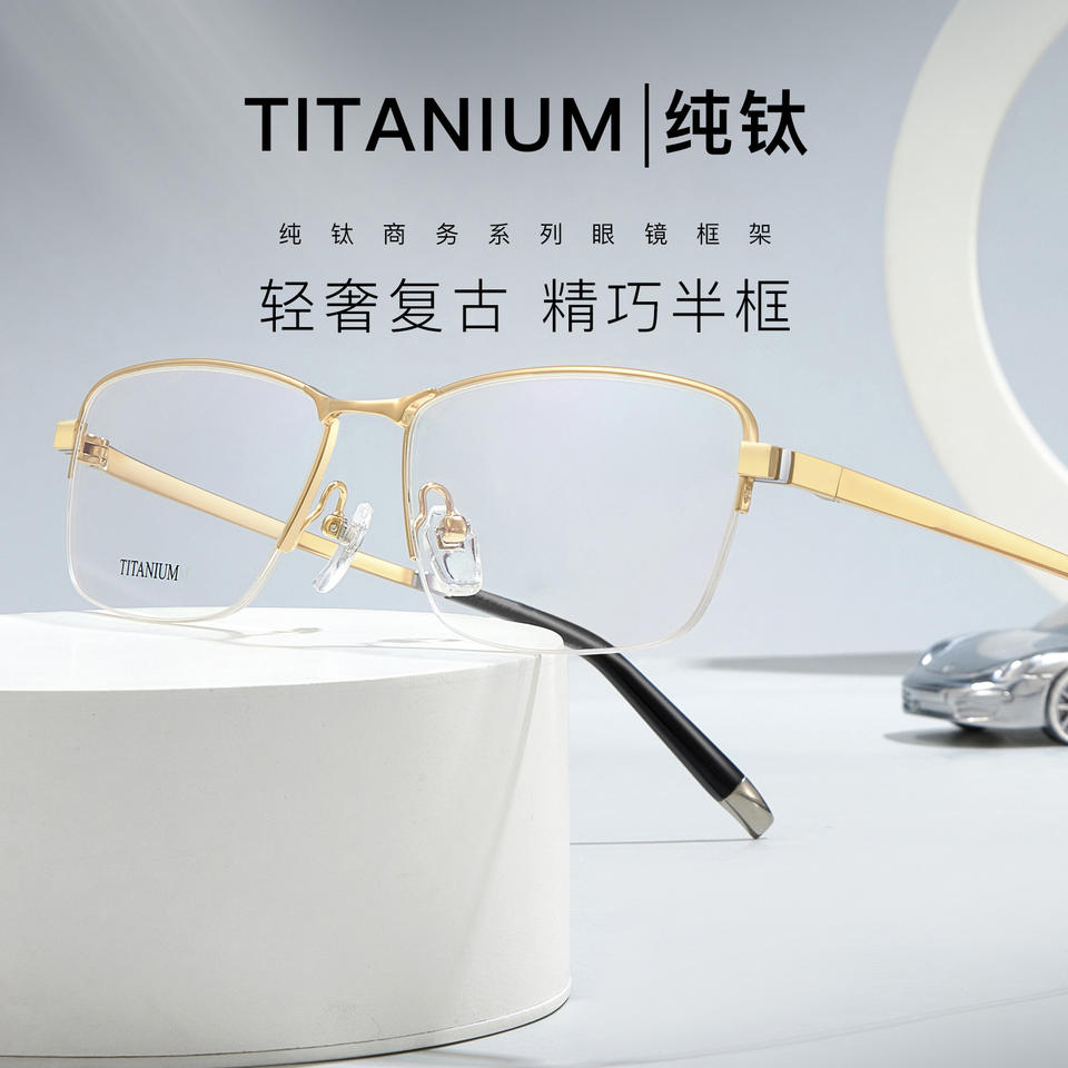 Montures de lunettes demi-cerclées en titane Commare pour hommes S9083, verres acryliques moyens, origine Shenzhen, design quadrilatéral linéaire
