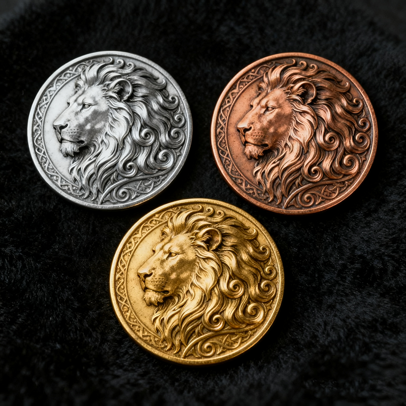 Médaille de Lion plaquée or argent en relief 3D commémorative texte personnalisé Logo gravure médaille de Lion en métal sans rubans