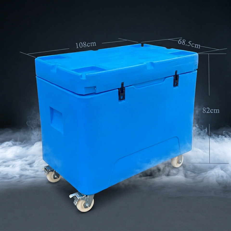 Glacière isotherme commerciale 330L pour glace sèche, coque rotomoulée LLDPE+PU, roulettes robustes, étanche, pour panneaux solaires et boîtes alimentaires