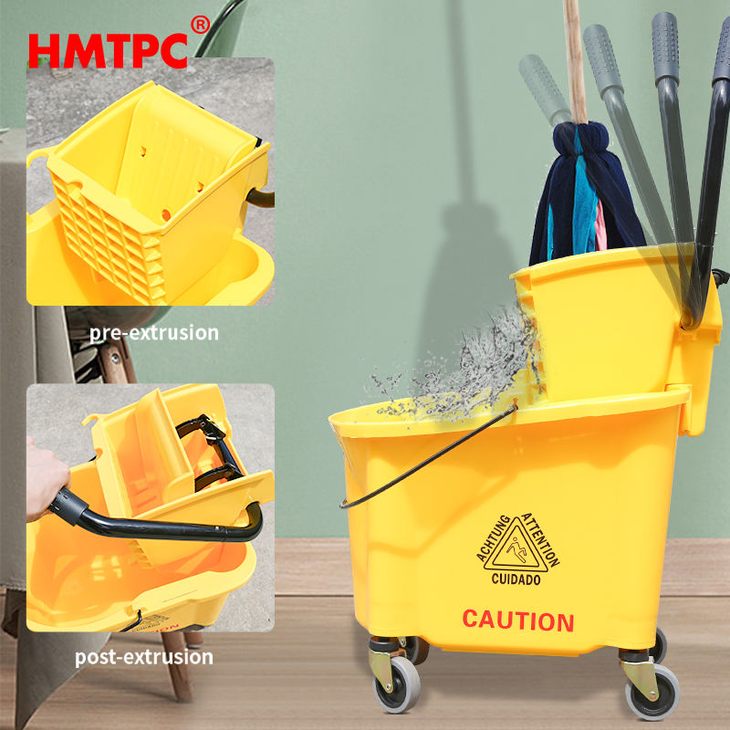 Seau à serpillière commercial de 36 litres en PP avec roues et poignée, vente en gros moins chère, essoreur pour le nettoyage des sols, provenant des usines