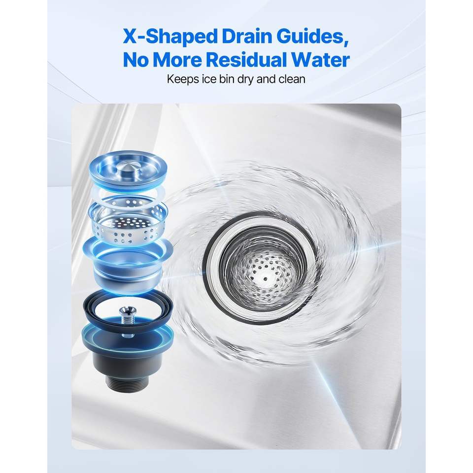 Bac à glace commercial en acier inoxydable de 49,4 Qt de capacité maximale avec couvercle coulissant, 18 x 18 x 33 pouces, bacs à boissons, porte-bouteilles pour boissons
