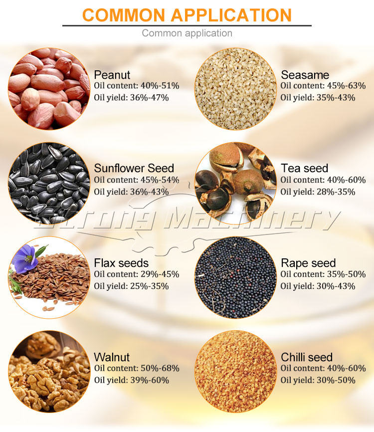 huile de graine d'asphalte, Huile de soja, Rap d'huile de graine, Huile de graines de thé, Huile de basilic, Huile de sésame, D'huile de noix de pin, Huile de graines de tournesol, Almond oil, Huile de noix, Huile d'arachide, Huile de noix de coco, Huile d'olive, Huile de palmeType d'huile