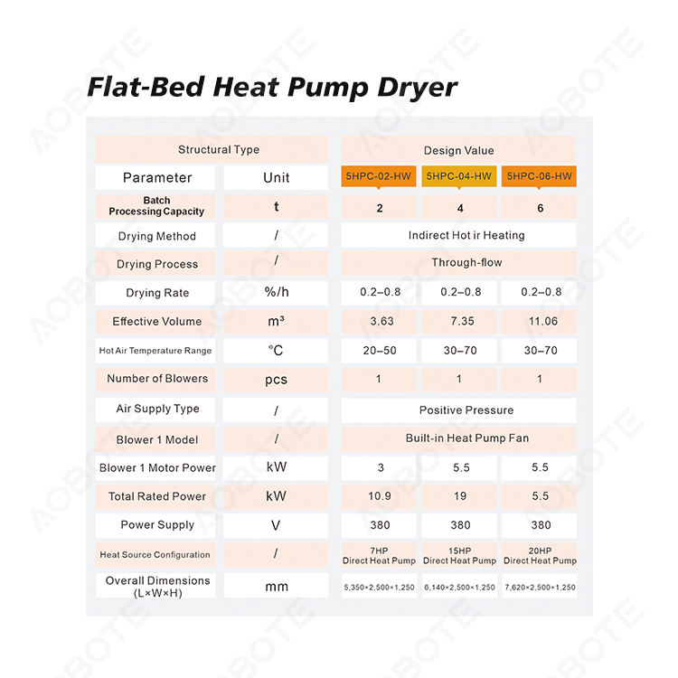Nom du produit:Séchoir à pompe à chaleur à plateau plat de 2 tonnes