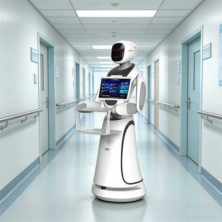 Robot de livraison alimentaire autonome commercial avec navigation intelligente multi-plateaux pour restaurants, hôtels, cafés et services de traiteur