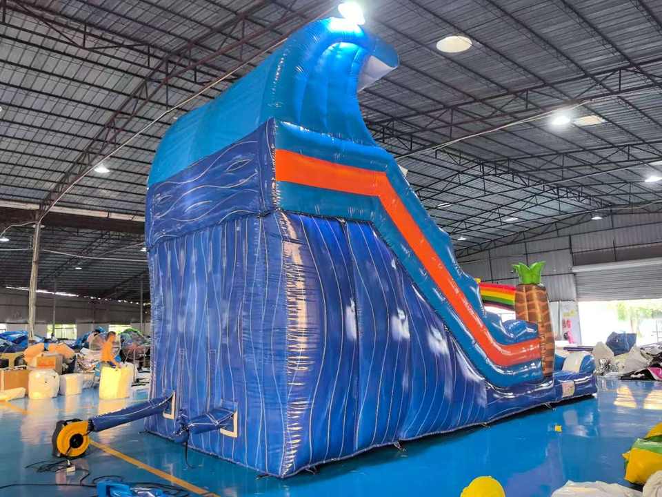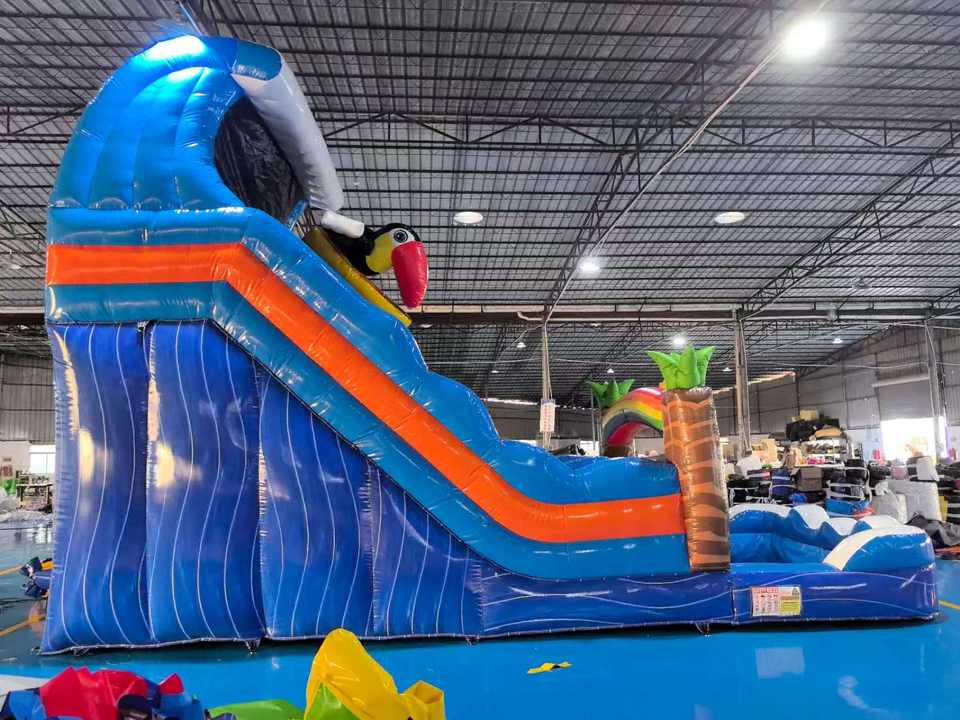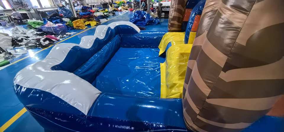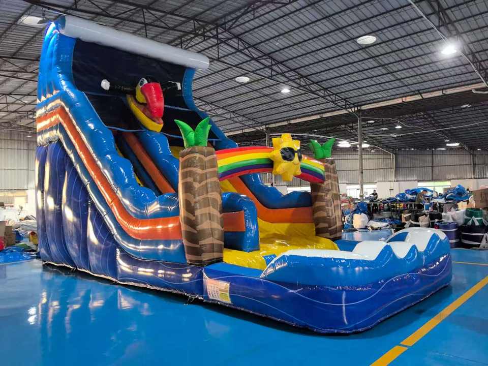 Structure gonflable commerciale pour jardin, avec toboggan aquatique tropical en marbre, château sauteur et piscine intégrée