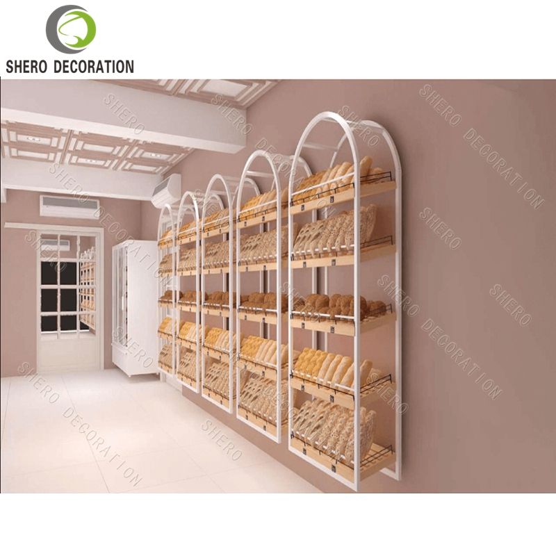 Comptoir de présentation en verre pour boulangerie, meuble de présentation de pain en bois pour magasin de boulangerie, mobilier de boulangerie commerciale.