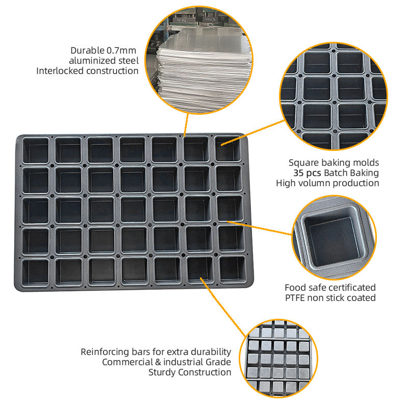 Ustensiles de cuisson commerciaux en acier aluminisé antiadhésif, plaque de cuisson à 35 cavités carrées pour muffins et cupcakes, plaque de cuisson industrielle pour four