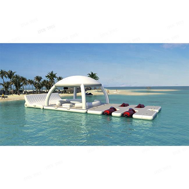 Plateforme flottante gonflable en PVC pour station balnéaire commerciale, ponton flottant pour bateaux Sea Bobs avec tente pour les loisirs, garantie de 2 ans