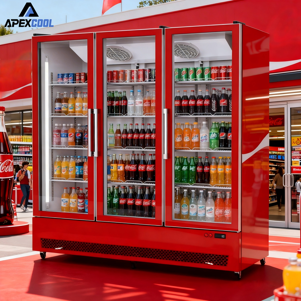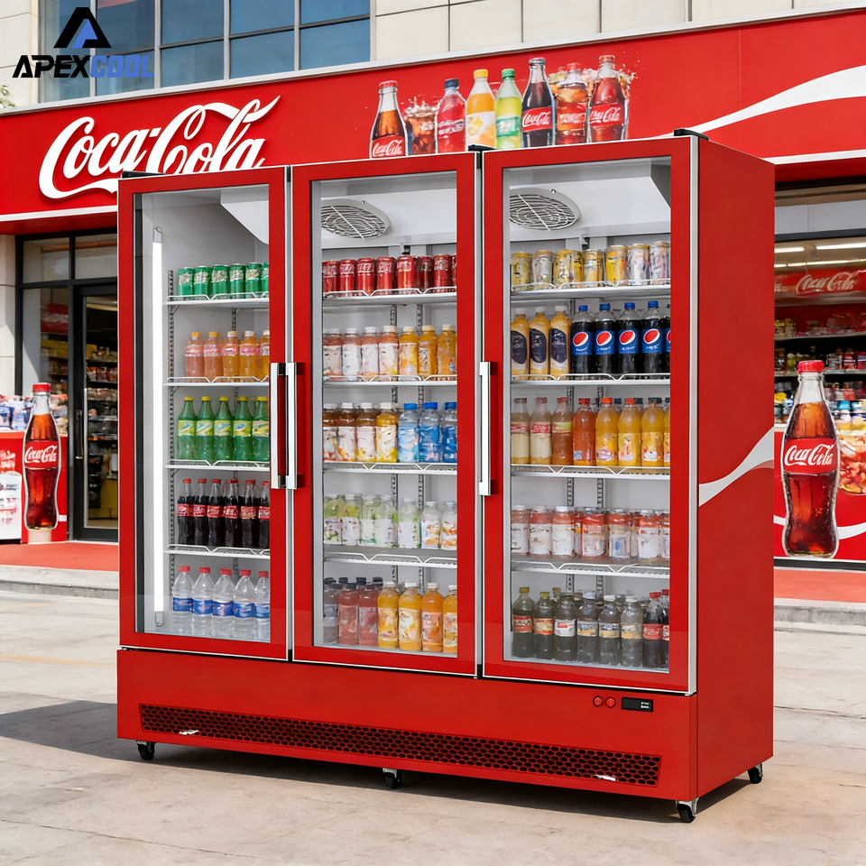 Réfrigérateur commercial pour boissons, vitrine à trois portes vitrées, refroidisseur pour restaurant, refroidissement par compresseur