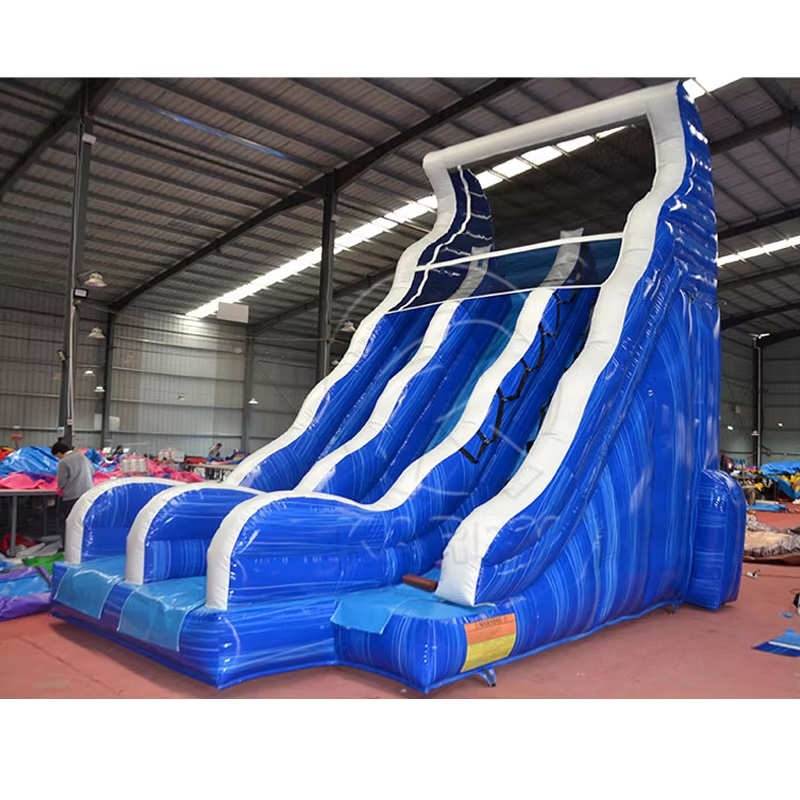 Videurs gonflables extérieurs commerciaux de glissière d'eau de PVC bleu et châteaux sautant avec la piscine pour des lieux de divertissement de parcs aquatiques
