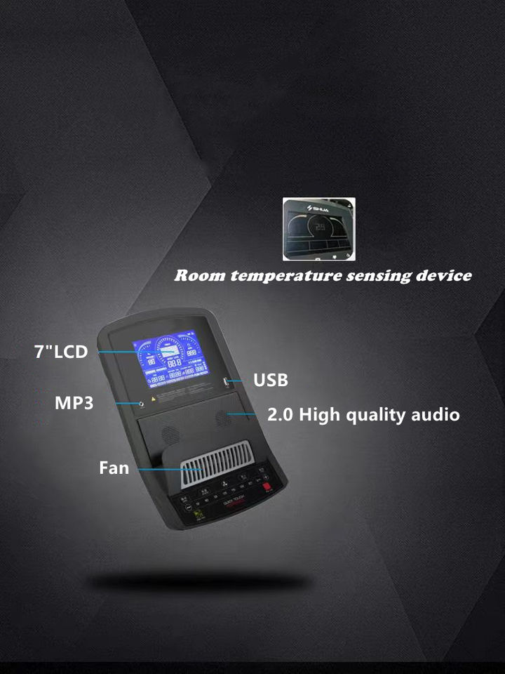 Affichage:Temps, vitesse, distance, calories, pouls, récupération d'impulsion, graisse corporelle, LCD 7"