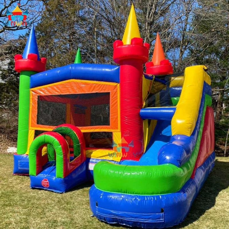 Château gonflable commercial en PVC avec toboggan et piscine, taille 5x6m, installation facile pour les fêtes