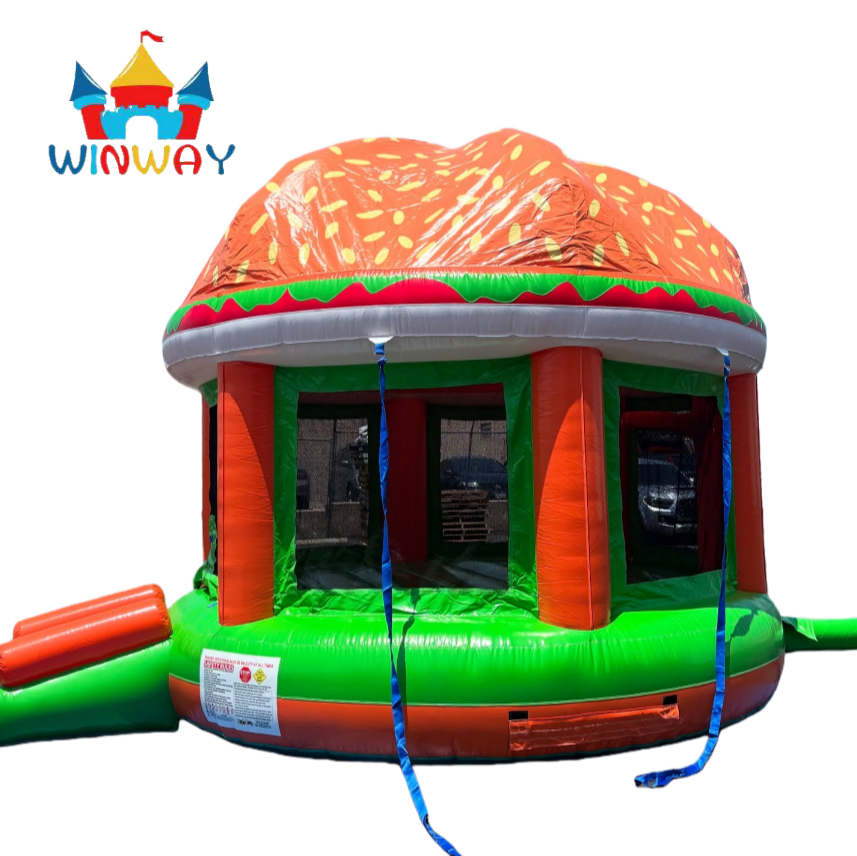 Château gonflable en forme de hamburger commercial, aire de jeux pour enfants en plein air et en intérieur, château gonflable pour les fêtes sur le thème de la restauration rapide