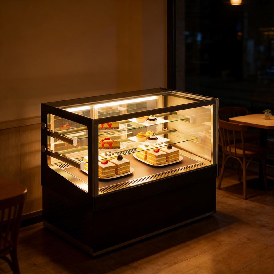 Vitrine Réfrigérée Commerciale pour Gâteaux, pour Supermarchés, avec Porte Coulissante Arrière Ventilée à Refroidissement par Air