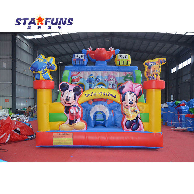 Parc de toboggan gonflable de dessin animé commercial thème Mickey Minnie Mouse maison de rebond avec toboggan gonflable videur fête enfants