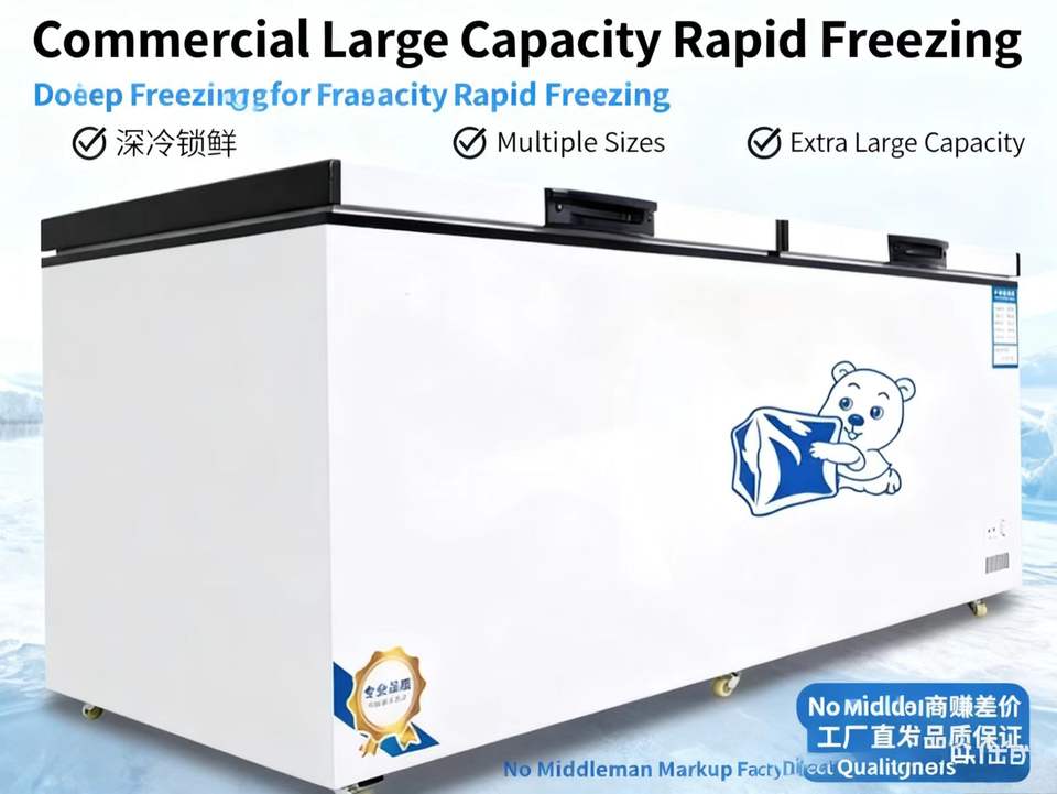 Congélateur coffre commercial grande capacité pour usage professionnel, réfrigération et congélation double fonction, congélateur/réfrigérateur simple/double