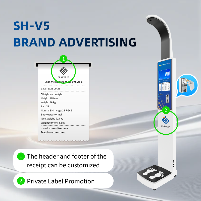 Balance commerciale à monnayeur pour la mesure de la taille et du poids avec imprimante – Machine de pesée à monnayeur