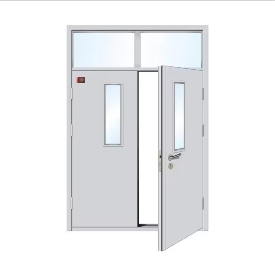 Porte en acier ignifugée de 1 heure, design contemporain commercial, robuste, avec matériau en verre pour applications extérieures