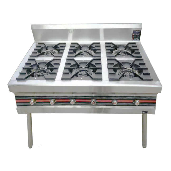 Machine de cuisson commerciale Casst Iron 6 brûleurs Cuisinière à gaz Équipement de cuisson autonome pour cuisine de restaurant