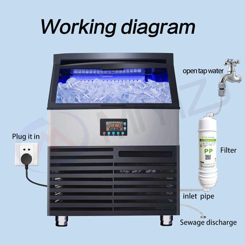 Machine à glaçons commerciale de comptoir solaire/électrique en acier inoxydable, blocs de glace cubiques, capacité 50 kg/jour, industrielle, écoénergétique
