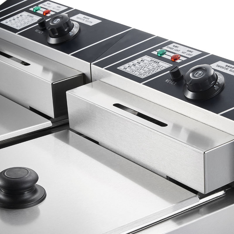 Friteuse électrique professionnelle de comptoir à double cuve et double panier pour frites et poulet, idéale pour les restaurants