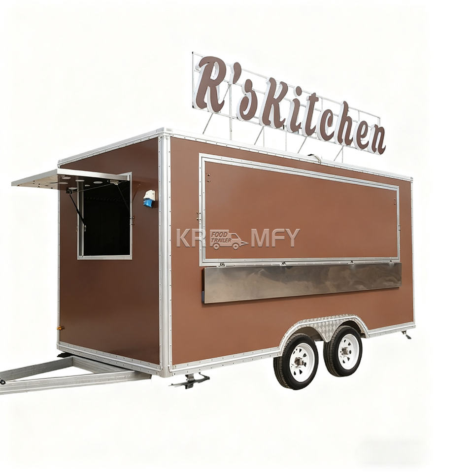 Remorque de service mobile de grande taille pour la vente ambulante, personnalisable pour usage commercial, avec enseigne personnalisée du logo de la marque, pour la vente de pommes de terre cuites, type camion de restauration