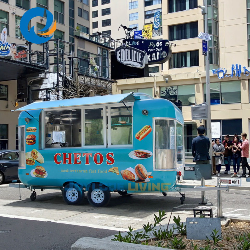 Remorque alimentaire commerciale personnalisée avec four à pizza en acier inoxydable et construction en fibre de verre pour la vente de glaces et de hot-dogs