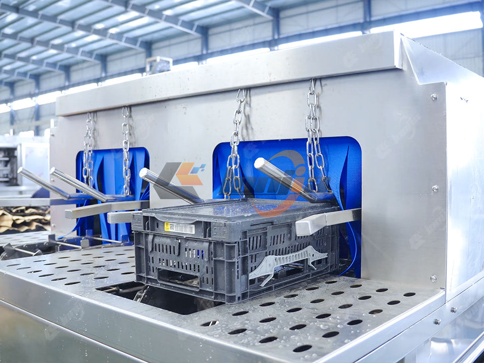 Laveuse commerciale à double canal pour caisses, paniers en plastique, plateaux de cuisson, boîtes et palettes