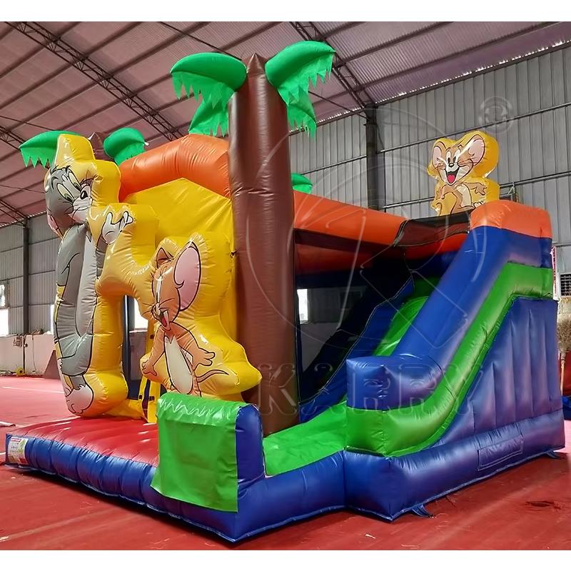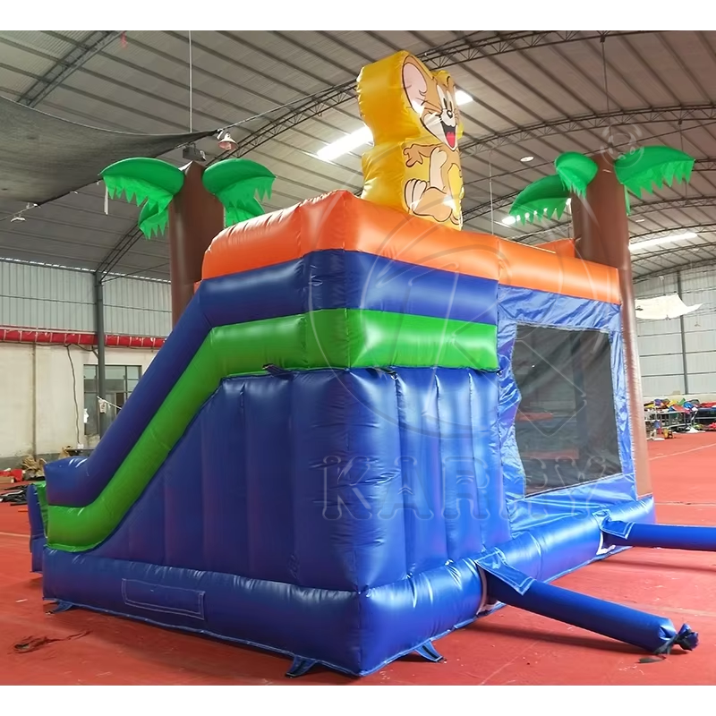 Château sautant gonflable de thème de dessin animé européen commercial Combo toboggan de videur sautant populaire