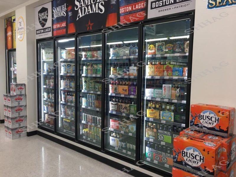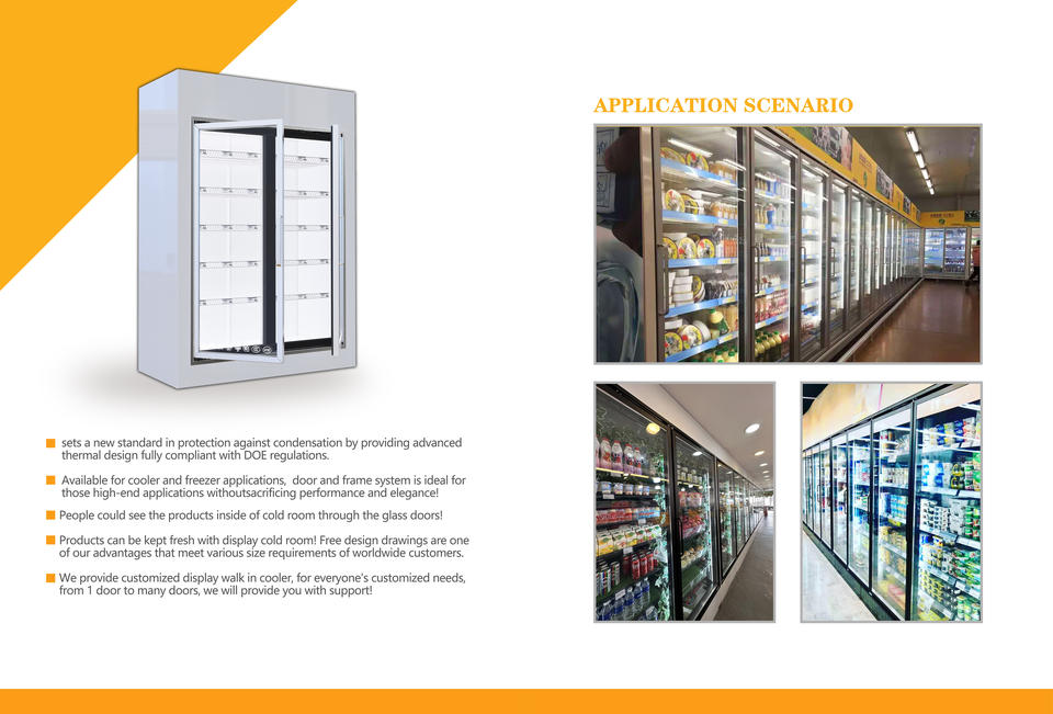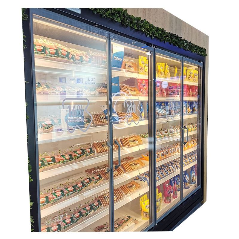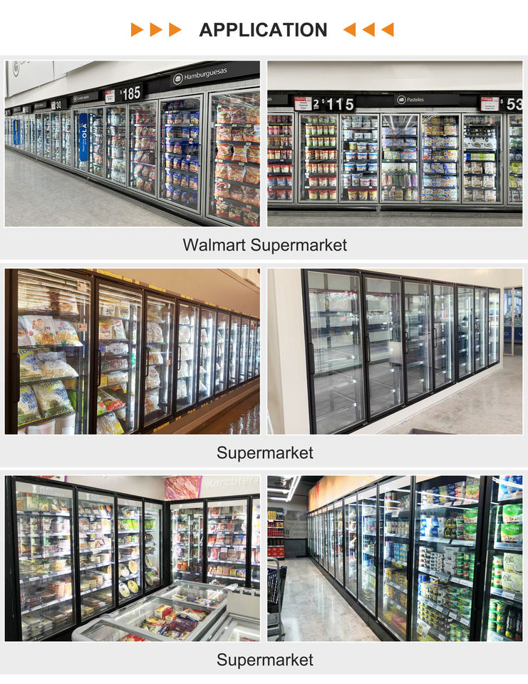 Congélateur commercial avec porte vitrée, étagère de présentation, porte vitrée pour chambres froides / réfrigérateur de supermarché