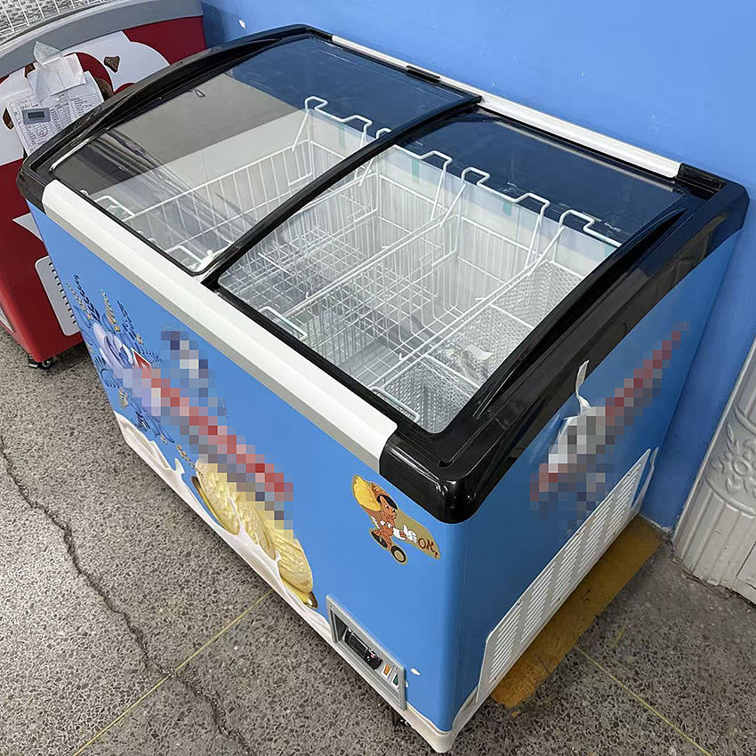 Réfrigérateur commercial avec porte coulissante en verre, congélateur profond, congélateur à crème glacée, vitrine de congélation pour aliments surgelés