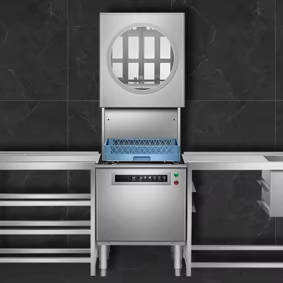 Lave-vaisselle commercial entièrement automatique à vision, stérilisation haute température, machine à laver les ustensiles, 50-60 paniers/heure, économe en énergie