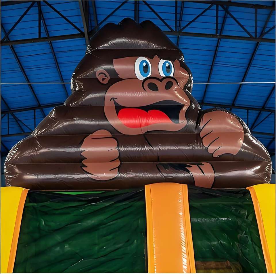 Toboggan gonflable commercial sur le thème de la jungle gorille, toboggan géant tropical en forme de palmier pour la location de fêtes d'enfants
