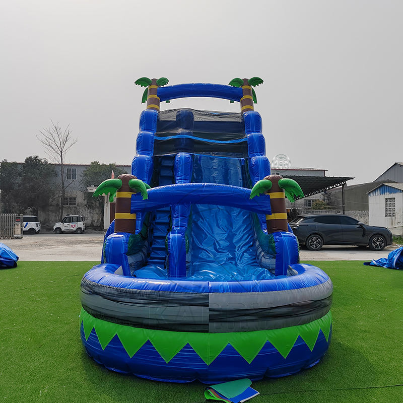Toboggan aquatique gonflable de qualité commerciale pour adultes, toboggan aquatique gonflable en forme de palmier avec piscine, toboggans gonflables en PVC colorés