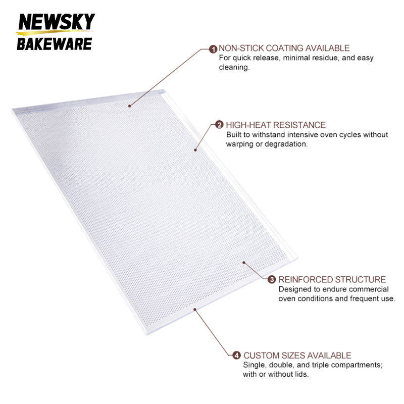 Plateau de cuisson en aluminium de qualité commerciale avec base en maille perforée Dimensions personnalisées pour la cuisson à haute capacité dans les boulangeries et les restaurants