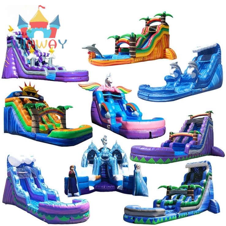 Château gonflable commercial pas cher avec toboggan aquatique et toboggan sec pour la location