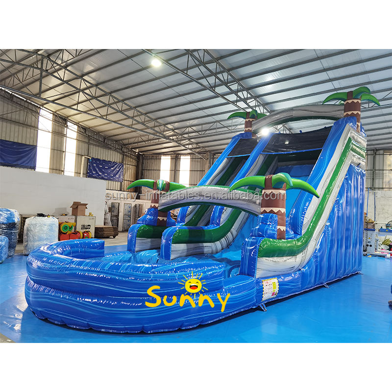 Toboggan aquatique gonflable de qualité commerciale avec piscine, grand toboggan aquatique gonflable en forme de palmier à double piste, à vendre