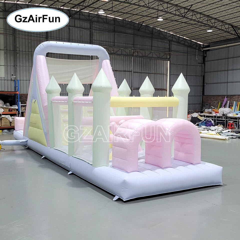 Parcours d'obstacles gonflable de qualité commerciale couleur macaron avec toboggan, château gonflable en PVC pour enfants pour mariages, anniversaires et événements