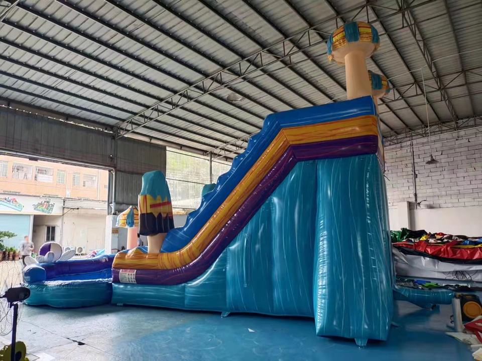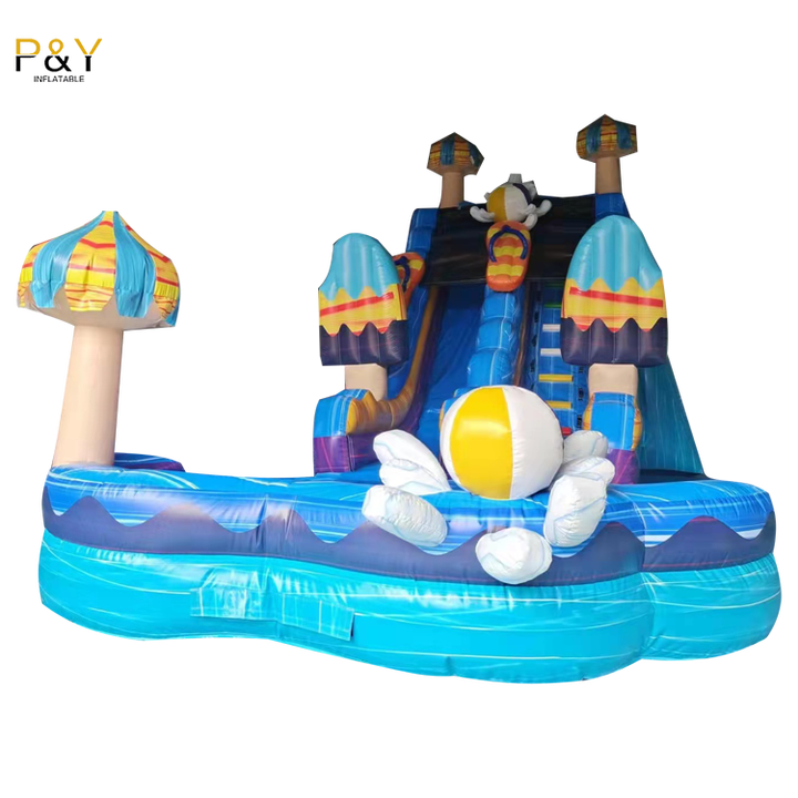 Tongs en PVC de qualité commerciale pull popsicle videur toboggans gonflables en gros avec piscine d'eau pour location de vacances