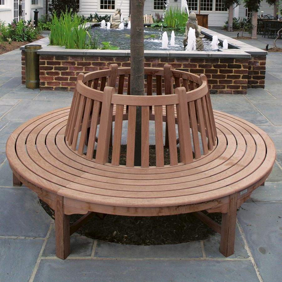 Banc rond en teck massif de qualité commerciale pour l'aménagement des espaces extérieurs des parcs, villas et complexes hôteliers
