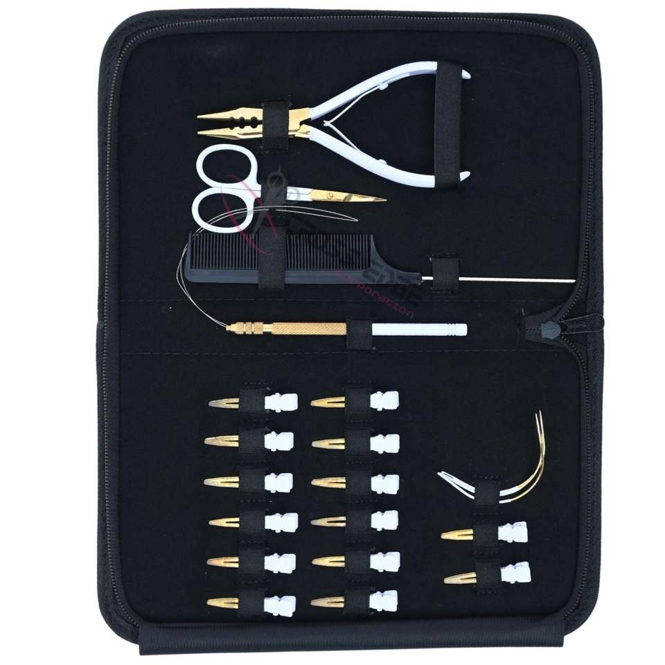 Utilisation:Kit d'outils pour salon de coiffure : peigne, aiguilles, pince, extensions de cheveux