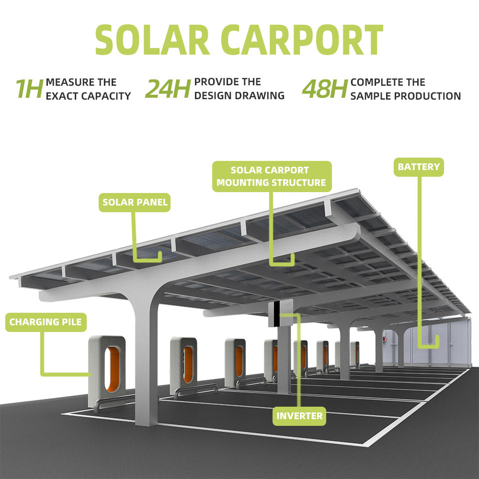 Système de panneau solaire monocristallin commercial à haute efficacité montage d'abri de stockage d'énergie garages en métal auvents carports